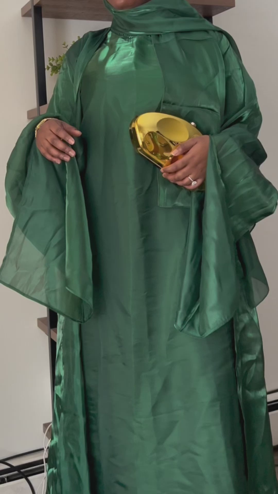 - 3-piece set: Outer abaya, half-sleeve inner dress, and hijab